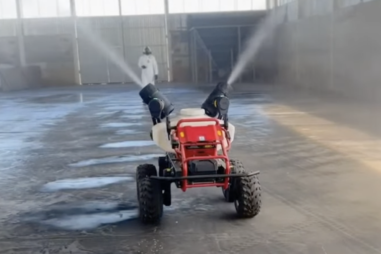 Nuestro robot terrestre está equipado de dos potentes atomizadores multidireccional 360 grados. Además cuenta con barras pulverizadoras para tratamiento a nivel del suelo o verticales.