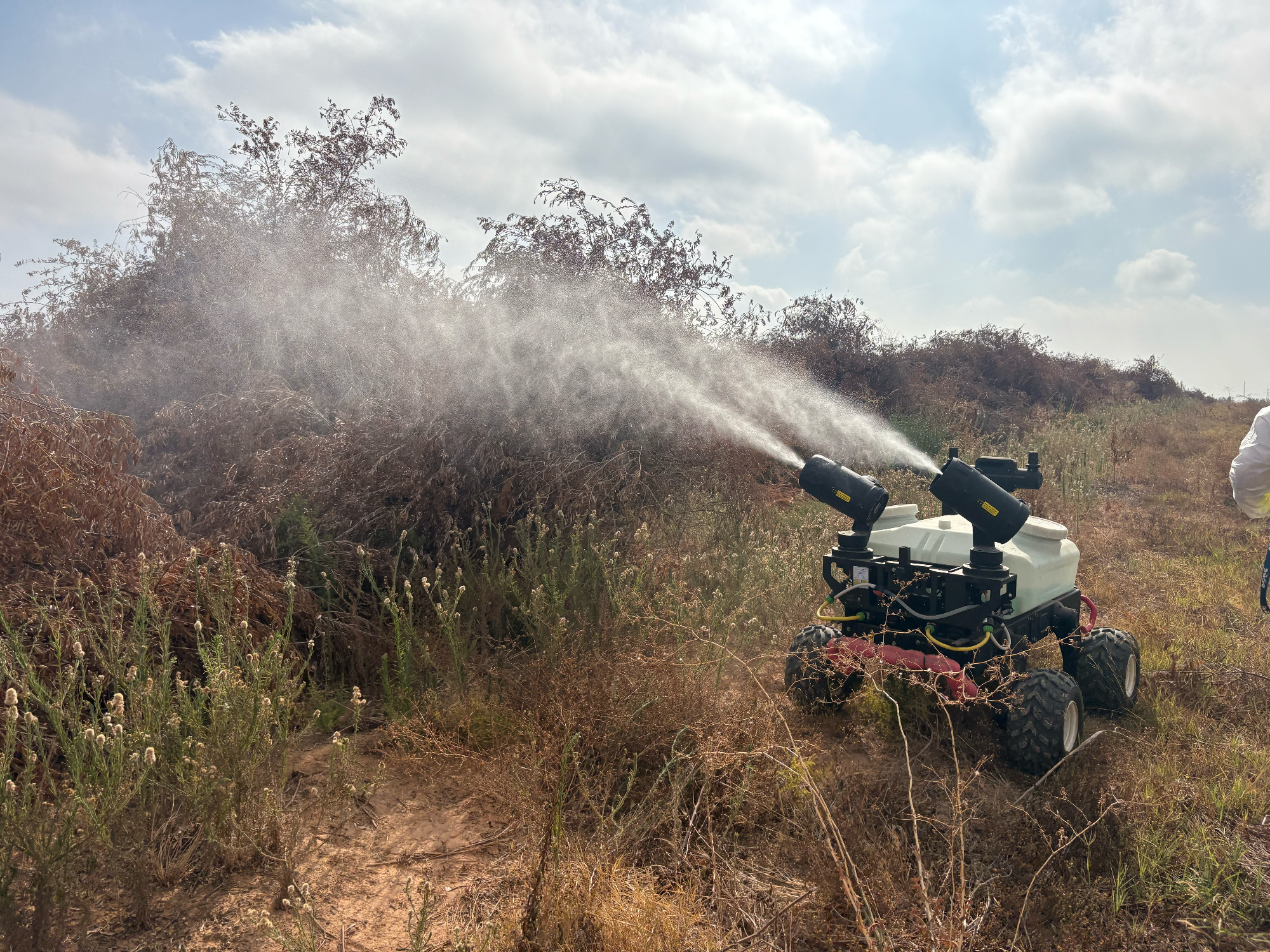 Nuestro robot terrestre está equipado de dos potentes atomizadores multidireccional 360 grados. Además cuenta con barras pulverizadoras para tratamiento a nivel del suelo o verticales.