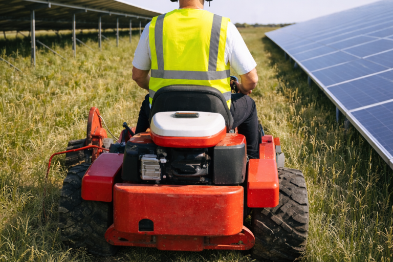 Asimismo, la acumulación de biomasa seca incrementa significativamente el riesgo de incendios, especialmente en entornos con altas temperaturas. Un control adecuado de la vegetación también protege infraestructuras claves como cableados y estructuras, evita la proliferación de plagas y mejora la accesibilidad del personal y equipos, contribuyendo en conjunto a una explotación más eficiente, segura y duradera de la planta.